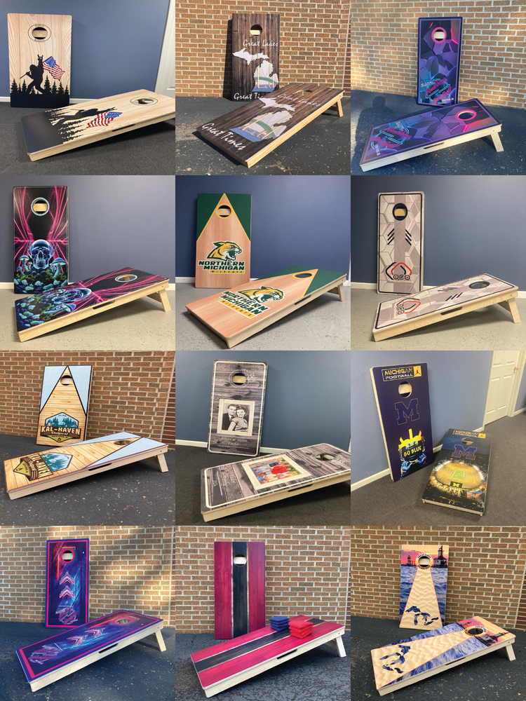 Get one of our BP Bags & Boards custom-made Cornhole Boards with your favorite team logo, your country's flag, your name or another favorite design.