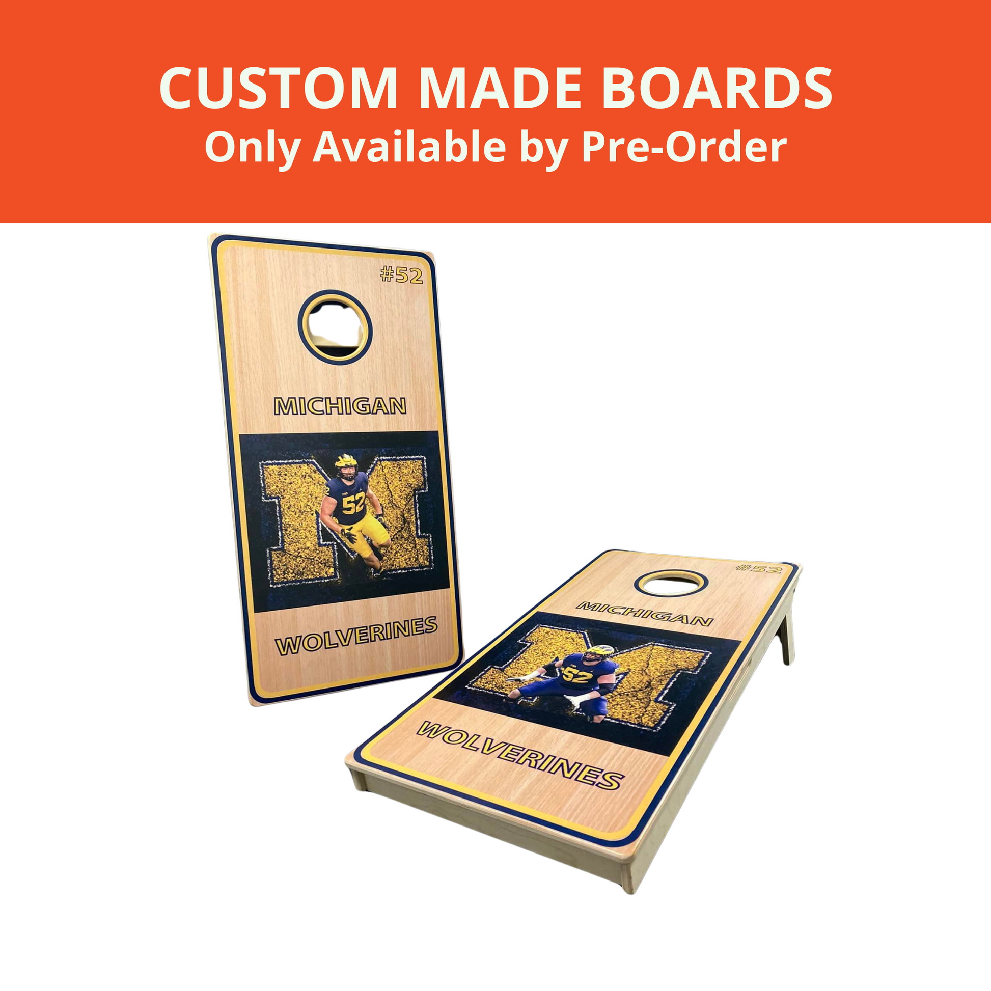 Get one of our BP Bags & Boards custom-made Cornhole Boards with your favorite team logo, your country's flag, your name or another favorite design.